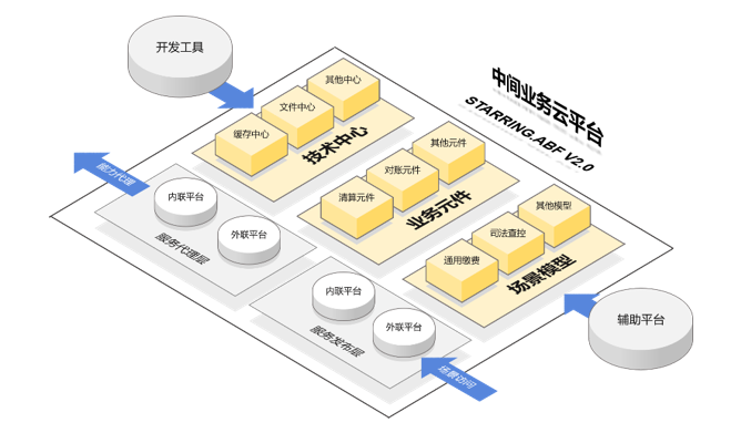 - 技术能力中心层主要完成技术能力的封装和共享,主要包括文件传输、流水号生成、参数和调度等